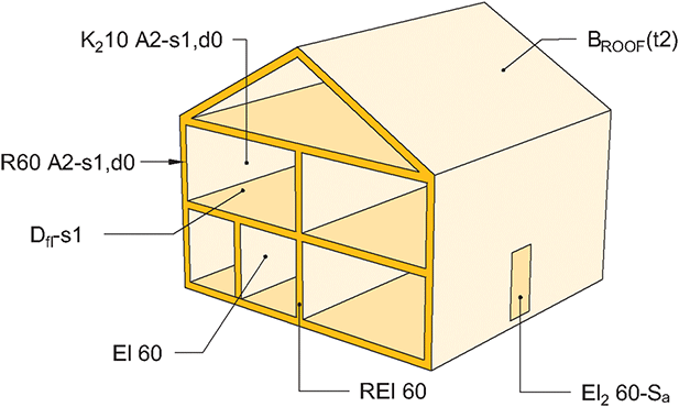 - angivelse av bygningsdelenes brannmotstand: R, E, I, W