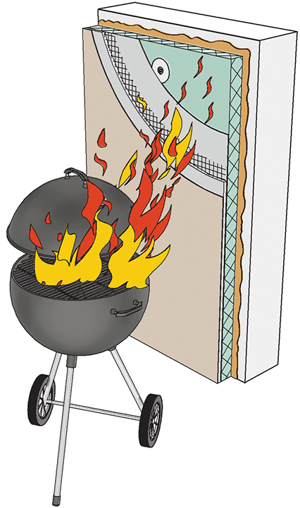- bruk av brennbar isolasjon i vegger og himlinger, i yttervegger, på kompakte tak og terrasser, i våtrom og i sandwichelementer
